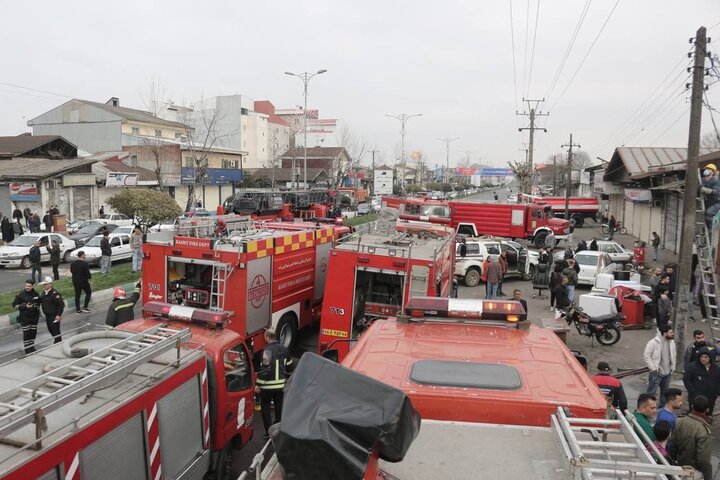 مهار آتش سوزی چند باب مغازه در حافظ آباد رشت؛ ۴۰ آتش نشان اعزام شدند