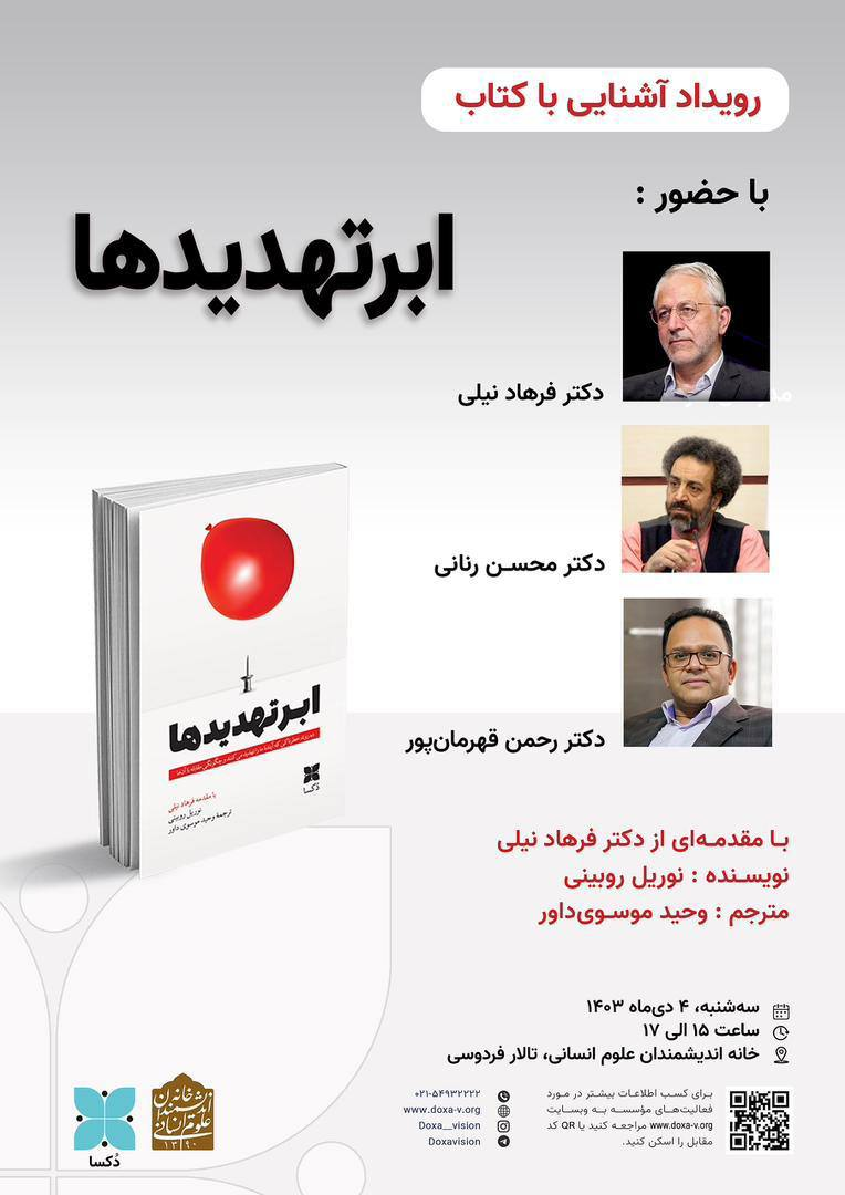 به گزارش خبرگزاری خبرآنلاین، نشست رونمایی از  «رویداد آشنایی با کتاب ابرتهدیدها» در خانه اندیشمندان علوم انسانی برگزار می شود.