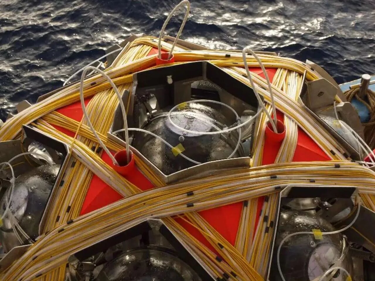یک واحد تشخیص KM3NeT که برای نصب آماده شده است.